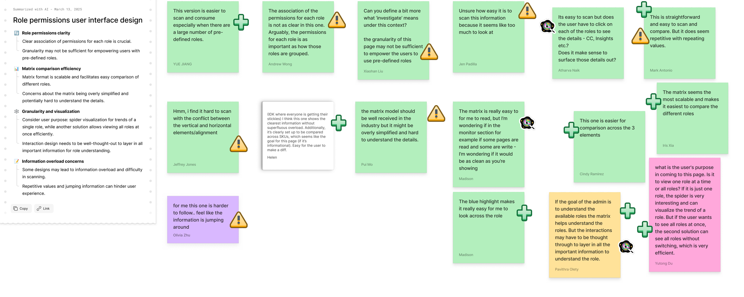 Enable quick comparison between roles